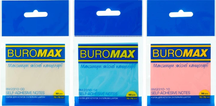 Набір прозорих стікерів для нотаток із клейким шаром пластикові Buromax 75x75 мм 50 аркушів x 3 упаковки Асорті (BM.2310.3)