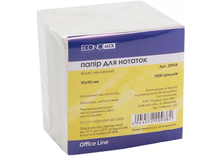 Папір для нотаток ECONOMIX 80х80 мм, 500 арк., проклеєний, білий E20995