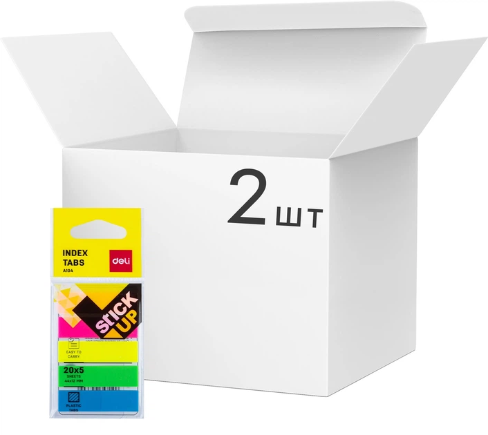 Упаковка стікерів-закладок Deli EA10402-2 пластикові 5 кольорів 2 упаковки по 100 аркушів (2000400811785)
