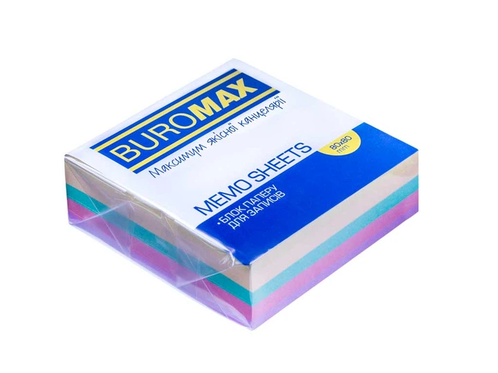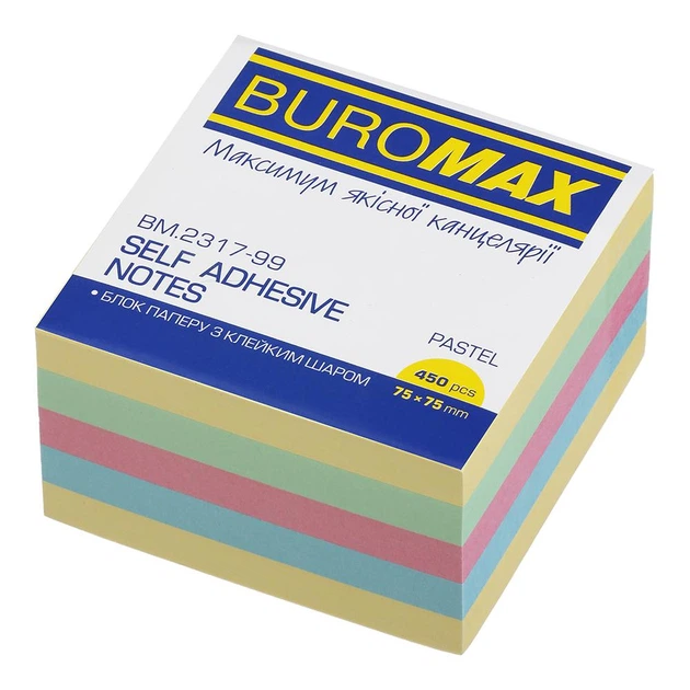 Блок паперу для нотаток з клейким шаром Buromax Pastel 75x75мм 450 аркушів асорті (BM.2317-99)