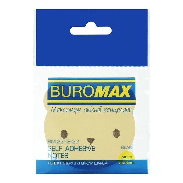 Блок для нотаток з клейким шаром Bear, 70x70 мм, 50 аркушів, пісочний, 4 шт. в упаковці