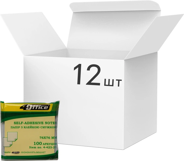 Набір паперу для нотаток з клейким шаром 4office 76х76 мм 12 блоків по 100 аркушів Mix (4-423-21) (14820071015412)