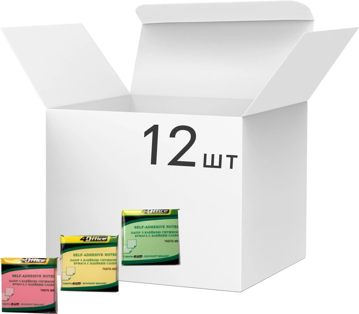Набір блоків паперу з липким шаром 12 шт. 4OFFICE, 76х102мм, 100л, кол. в асорті, 4-425
