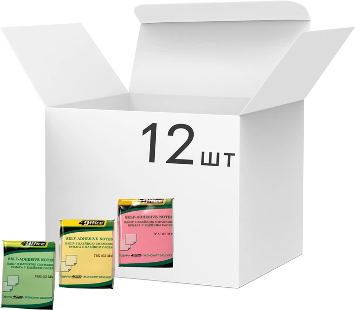 Набір паперу для нотаток з клейким шаром 4office 76х102 мм 12 блоків по 100 аркушів Асорті (4-425-22) (14820071014279)