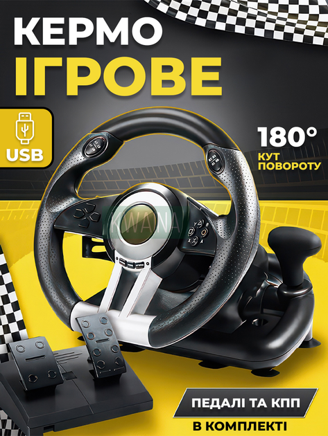 Ігрове кермо з педалями та вібрацією реалістичне керування з кутом повороту 180° сумісність з ПК та консолями, USB