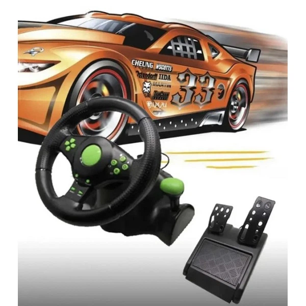 Ігровий кермо з педалями Vibrating Wheel 2в1 для PS2/PS3/ПК, 180° оберт, вібрація, USB, 13 кнопок
