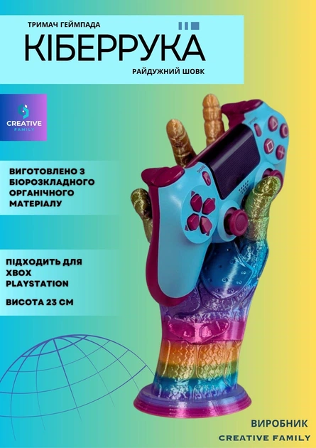 Creative Family: Тримач контролера "Кіберрука" райдужний шовк | Універсальний тримач джойстика | 23 см