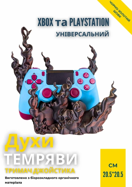 Creative Family: Тримач контролера "Духи Темряви" чорний шовк із золотом | Універсальний тримач джойстика | 20,520,5 см