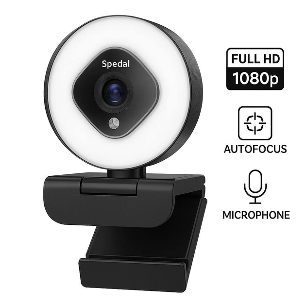 Spedal AF96 Веб-камера Full HD 1080p з автофокусом, подвійним мікрофоном і LED-підсвічуванням, Black