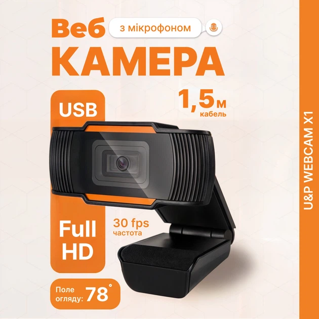 Веб-камера із мікрофоном U&P Webcam X1 Full HD USB Black (SWE-X1FH-BK)