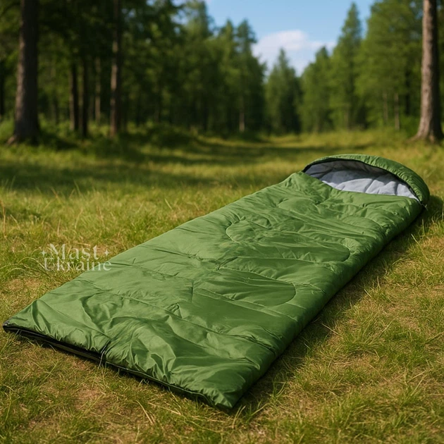 Спальний мішок з капюшоном 200х70 см, туристичний водовідштовхувальний теплий спальник-ковдра з блискавкою у чохлі, наповнюв