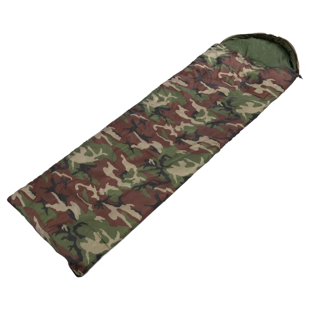 Спальний мішок ковдри з капюшоном (PL, бавовна, 950г, розчин 180+30х70см, t -5 до +15, камуфляж Woodland) (SY-7373Камуфляж W