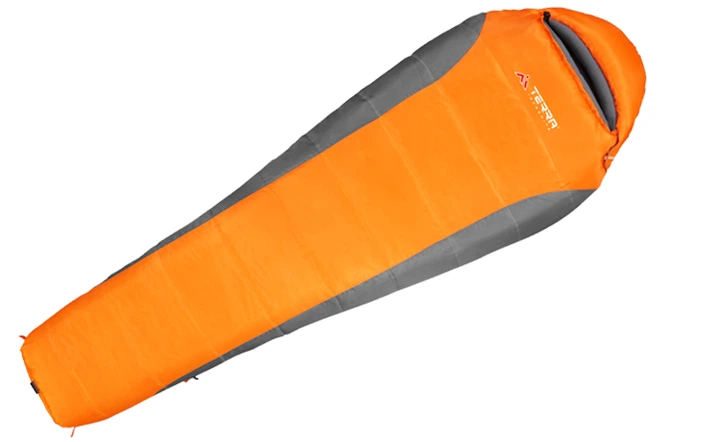 Спальний мішок кокон з анатомічним капюшоном та захистом від затискання, оранжево-сірий