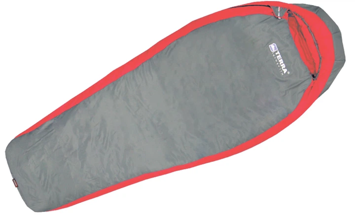 Спальний мішок кокон з утеплювачем PRIMALOFT, анатомічний капюшон, червоно-сірий