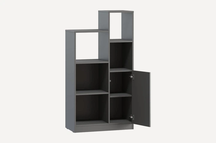 Стелаж P-1 на 7 комірок в кольорі Антрацит з дверцятою, Ш 680 / В 1300 / Г 370 мм