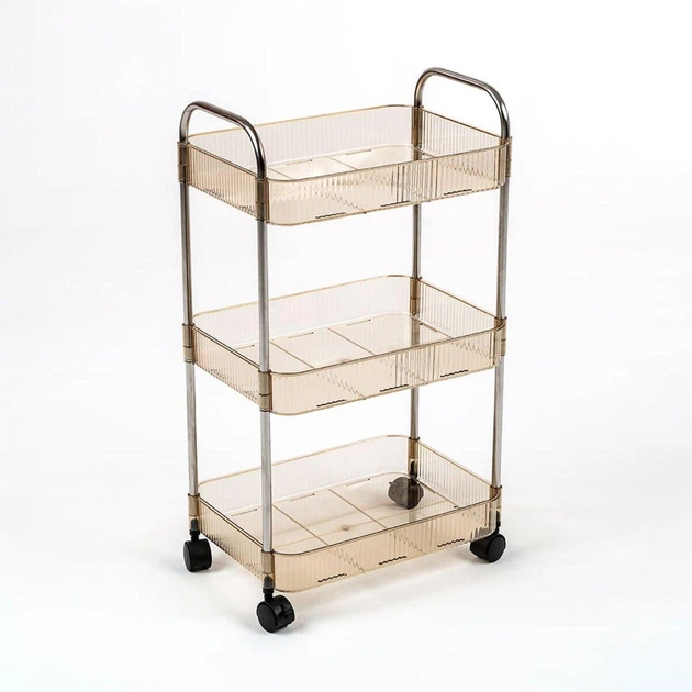 Етажерка мобільна триярусна універсальна з акрилу та металу бежева 40*28,5*70см SW-00002111