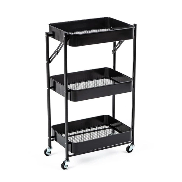 Етажерка мобільна триярусна універсальна з металу Sticker Wall чорна 46,5*29*77,5см (3DPanda-2099)