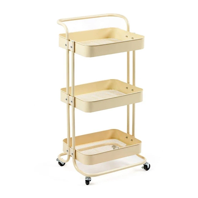 Етажерка мобільна триярусна універсальна з металу Sticker Wall кремова 45*37*82см (3DPanda-2105)