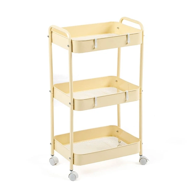 Етажерка мобільна триярусна универсальная з металу Sticker Wall кремова 45*30*78см (3DPanda-2113)
