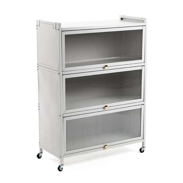 Шафа мобільна для зберігання розкладна триярусна з сталі світло-сіра 70*36*112,8см SW-00002116