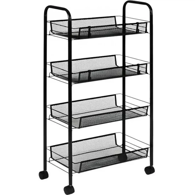 Етажерка органайзер 4-х ярусна на коліщатках, чорна (VEN-S4)