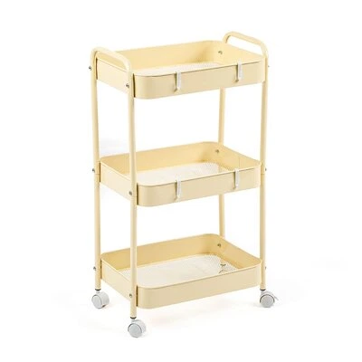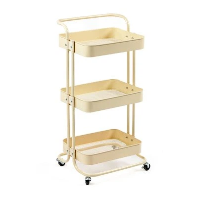 Етажерка мобільна триярусна універсальна металева 45х37х82 см кремова на колесах
