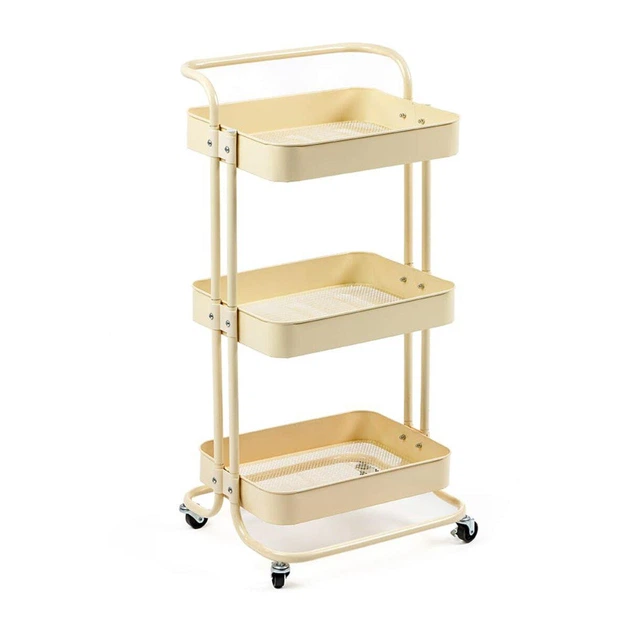 Етажерка мобільна триярусна універсальна з металу кремова 45*30*78см