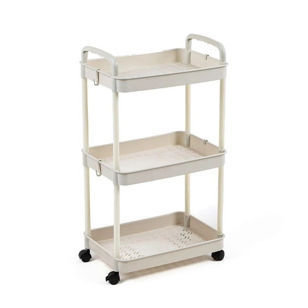 Етажерка мобільна триярусна універсальна пластикова слонова кістка 41*25*72см SW-00002435