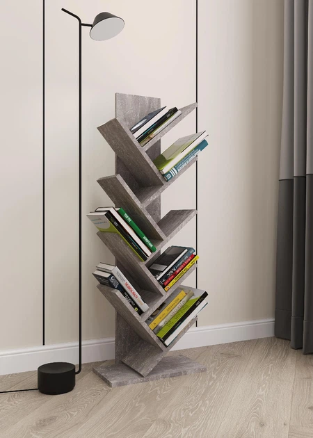 Стелаж P-2 на 11 комірок в кольорі Аппалачи + Бетон тефра з дверцятою, Ш 680 / В 2170 / Г 370 мм