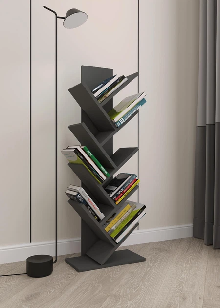 Стелаж P-2 на 11 комірок в кольорі Бетон темний з дверцятою, Ш 680 / В 2170 / Г 370 мм