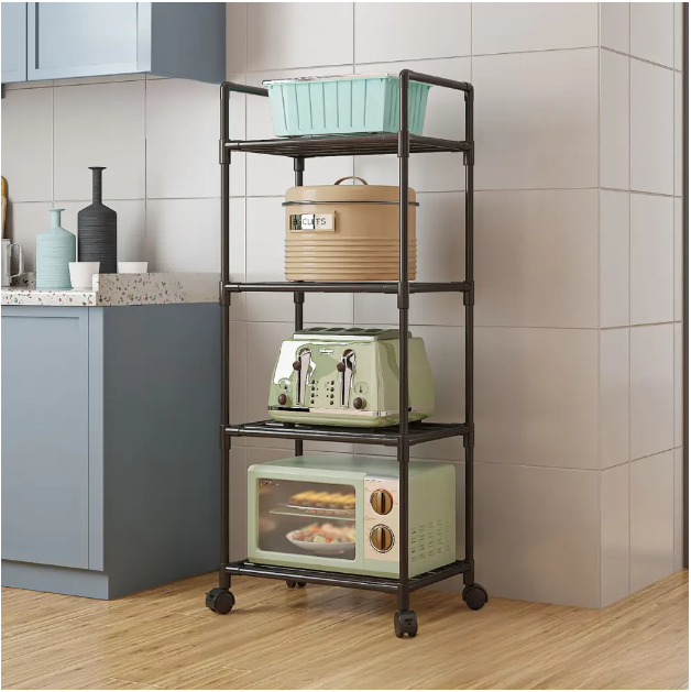 Етажерка стелаж SMN02 металевий 1250 х 710 х 340 мм на 4 полиці на коліщатках колір чорний