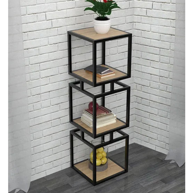 Стелаж для дому в стилі Лофт (3 куби) каркас металевий, дсп дуб сонома | StepLoft Rack-377