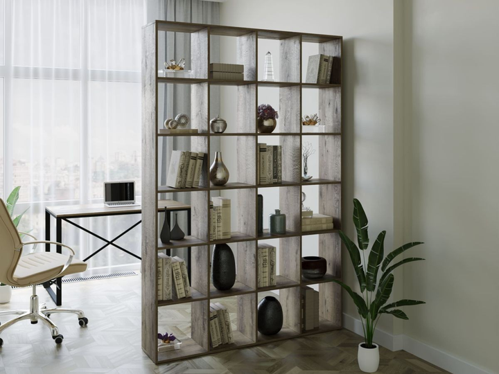 Стелаж-перегородка для зонування кімнати DrevoGoods для дому та офісу двосторонній, підлоговий / пристінний, дерев'яний з по