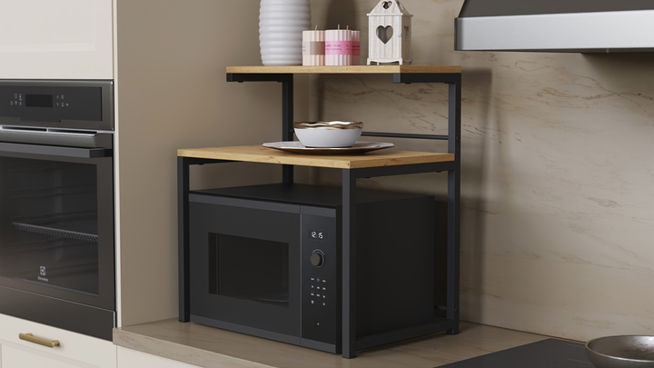 Підставка для мікрохвильовки Kitchen K302 Ferrum-decor 590x550x350 Чорний метал ДСП Дуб Артізан 16 мм (KITCH30206)