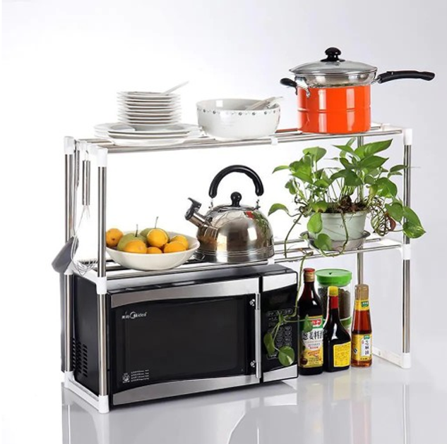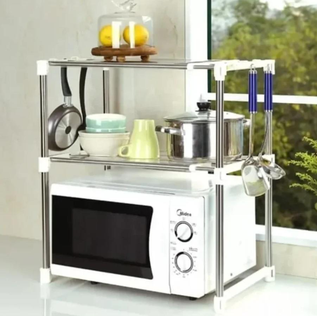 Полиця-трансформер для мікрохвильової печі настільна 2-ярусна, кухонна телескопічна стійка для побутової техніки, посуду та