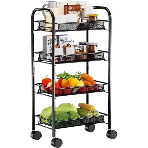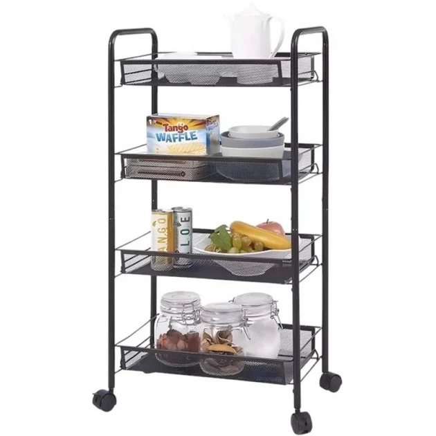 Етажерка органайзер 4-х ярусна на коліщатках, чорна (VEN-S4)