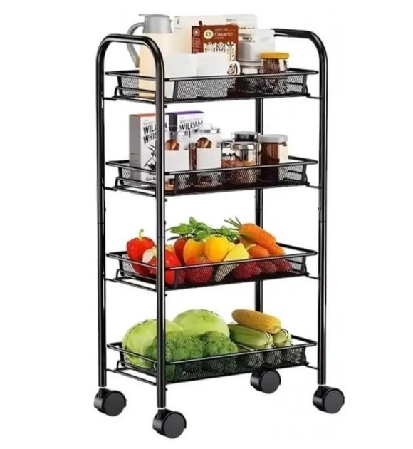 Етажерка органайзер 4-х ярусна на коліщатках (4) Чорна