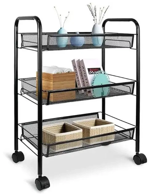 Етажерка органайзер 3-х ярусна на коліщатках (4) Чорна