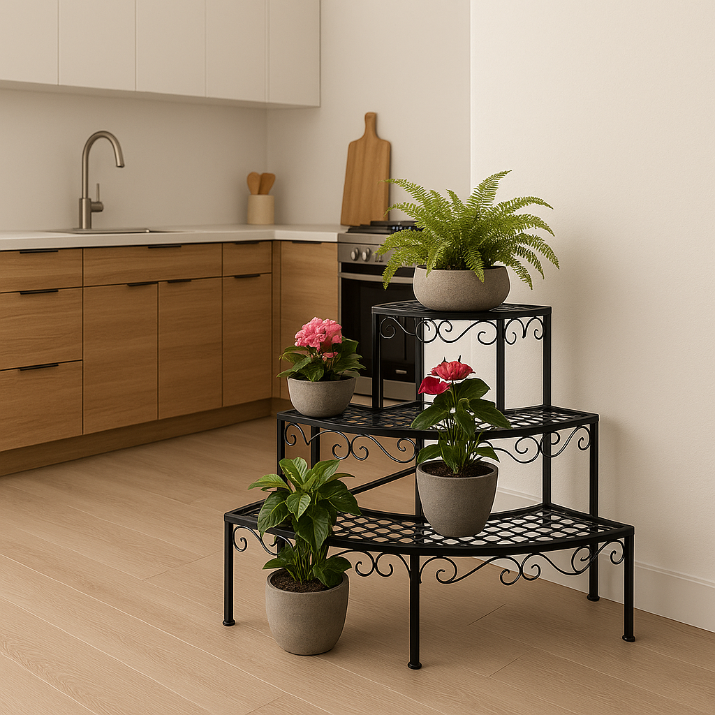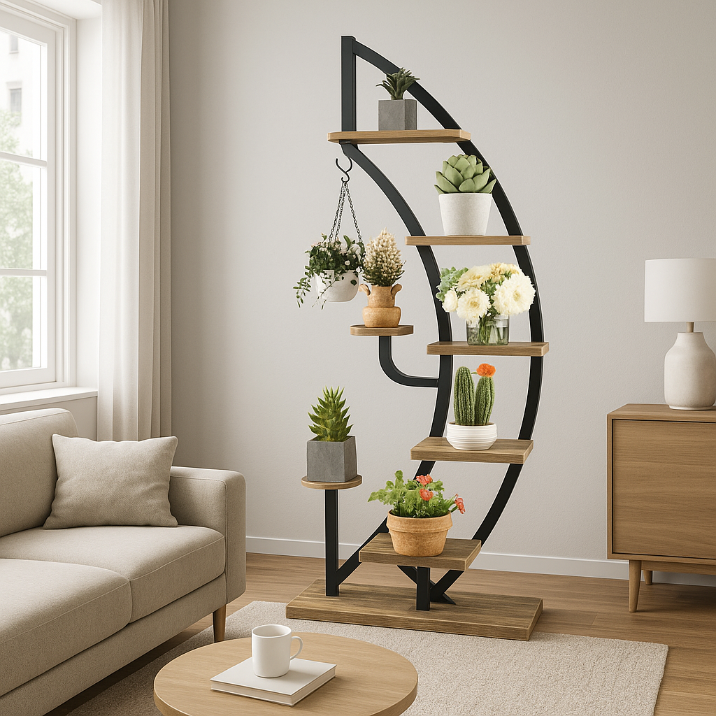 Іноді вистачає лише одного елемента, щоб перетворити звичайний куточок будинку на справжню вазу гармонії. Стелаж для квітів Costway Ruta — саме така знахідка. Його вигнута, плавна форма зачаровує з першого погляду, створюючи візуальний ритм і гармонію в інтер'єрі. Цей витончений стелаж для рослин у горщиках не тільки підкреслює красу кожної квітки, але й сам стає прикрасою простору.