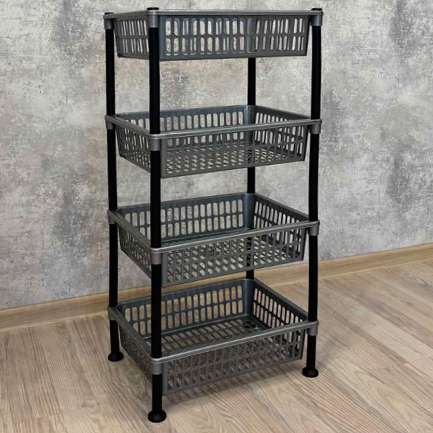 Етажерка пластикова 3 яруси на колесах Black, 40х22х66 см