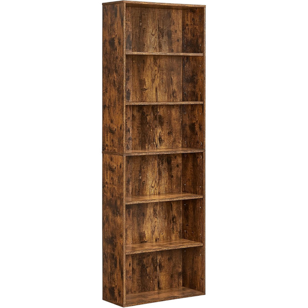 Книжковий шафа VASAGLE, 6 ярусів, індустріальний стиль, 24x60x178.5 см, вінтажний коричневий, для вітальні/офісу/спальні