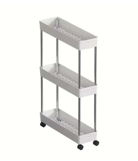 Мобильная этажерка 3 полки на колесах – для кухни, ванной, гостиной, белая, 13х35х61