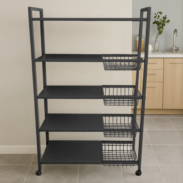 Етажерка чотириярусна універсальна розбірна пластикова на коліщатках 104х40х26 см Чорна