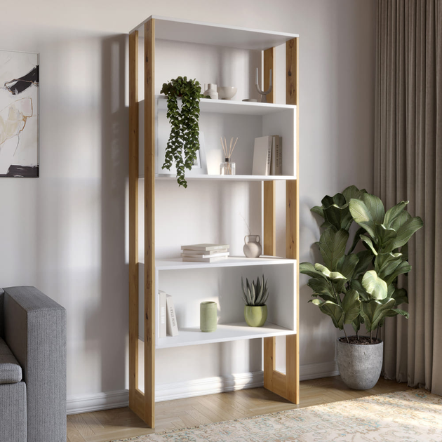 Модуль-1 стелаж полиці LION Нобу Німфея Альба (білий)/Дуб Артизан (LION-042417)