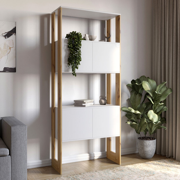 Модуль-5 стелаж полиці з фасадами LION Нобу Німфея Альба (білий)/Дуб Артизан (LION-042256)