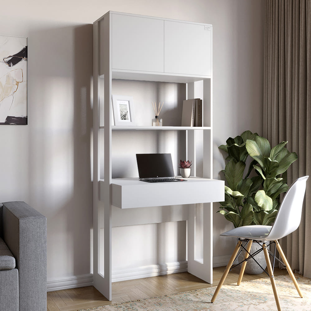 Модуль-2 стелаж зі столом та полицями LION Нобу Німфея Альба (білий) (LION-042448)