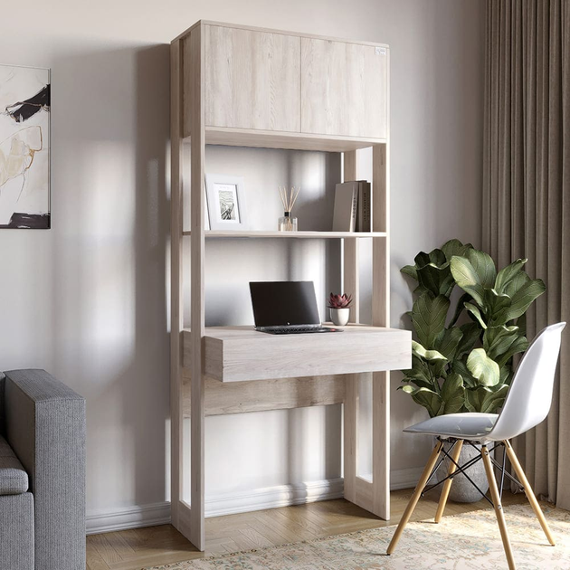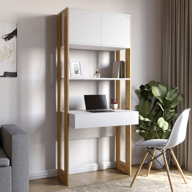 Модуль-2 стелаж зі столом та полицями LION Нобу Німфея Альба (білий)/Дуб Артизан (LION-042454)