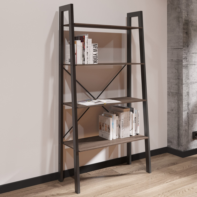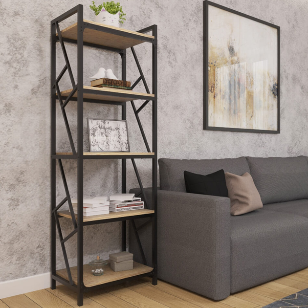 Стелаж Призма 4 полиці (Метал-дизайн) Чорний оксамит + Дуб античний 31111131