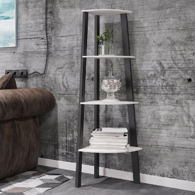 Кутовий Стелаж Призма 5 полиць (Метал-дизайн) Чорний оксамит + Аляска 31111141