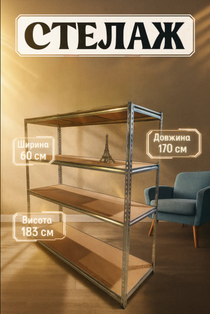 Стелаж Mirpol RMG300 MIR-RMG30018310060 100x60x183 см 300 кг Коричнево-хромовий